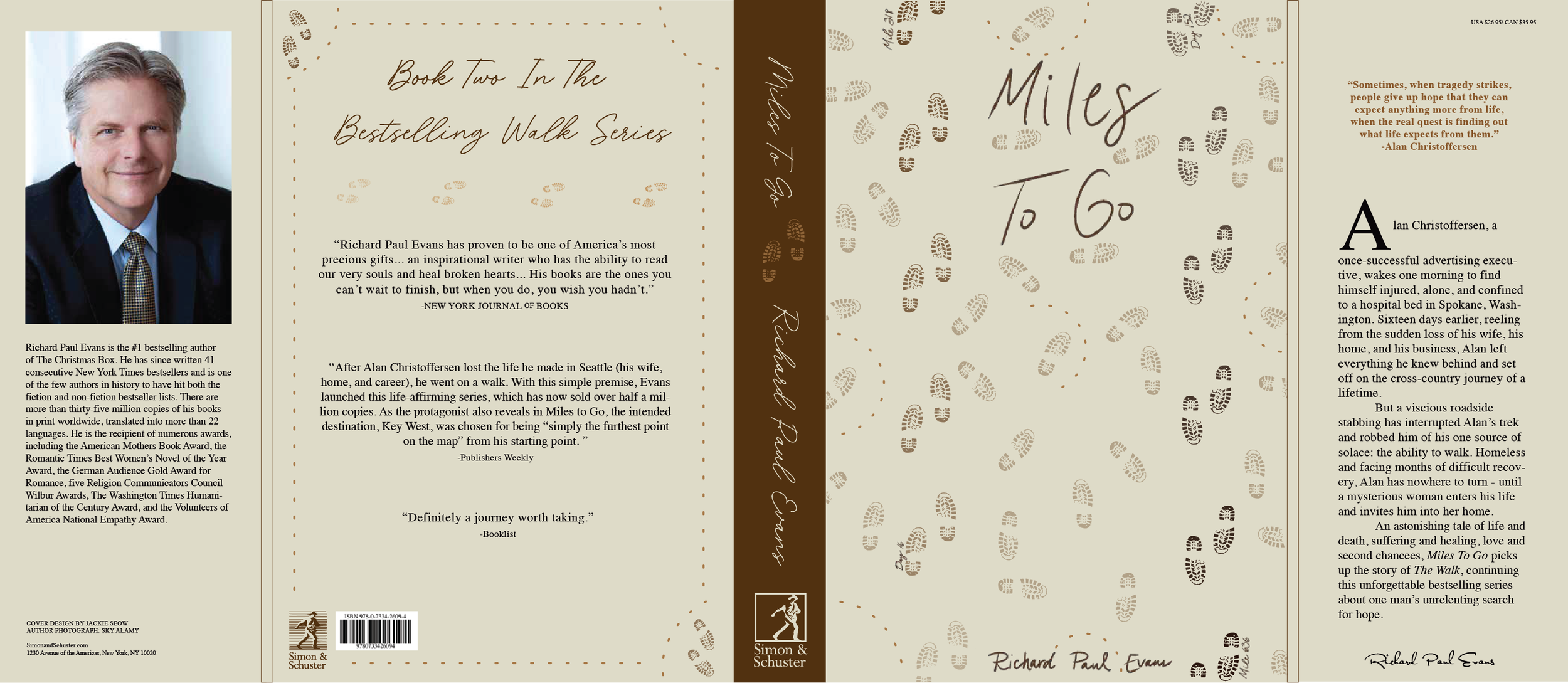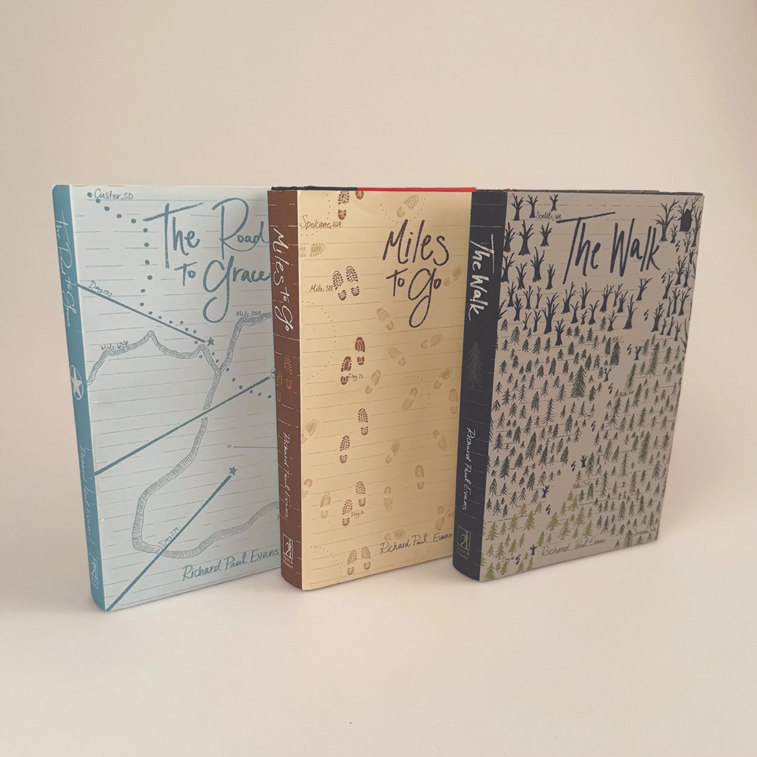The book series I chose for this project is called “The Walk Series.” The books in order are “The Walk,” “Miles To Go,”and “The Road To Grace.” These books follow the journey of Alan, a man who lost his wife, his house, and everything he loved. He decides to leave his old life behind and start a new one. Doing so, he walks from Seattle, Washington, to Key West, Florida, meeting many people along the way. They share stories, walk with him, and help him become a new man by the end of the series. This is a five book series but I only designed the first three for this project.
